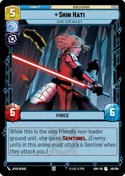 While this is the only friendly non-leader ground unit, she gains Sentinel. (Enemy units in this arena must attack a Sentinel when they attack you.)