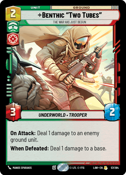 On Attack: Deal 1 damage to an enemy ground unit. When Defeated: Deal 1 damage to a base.