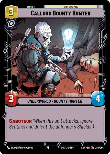 Saboteur (When this unit attacks, ignore Sentinel and defeat the defender's Shields.)