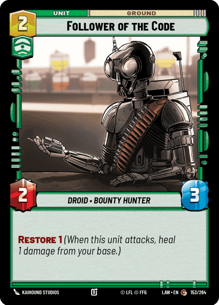 Restore 1 (When this unit attacks, heal 1 damage from your base.)