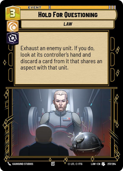 Exhaust an enemy unit. If you do, look at its controller's hand and discard a card from it that shares an aspect with that unit.