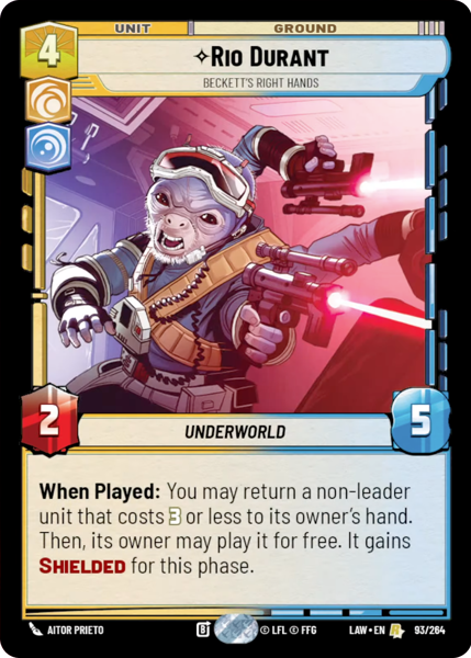 When Played: You may return a non-leader unit that costs 3 or less to its owner's hand. Then, its owner may play it for free. It gains Shielded for this phase.