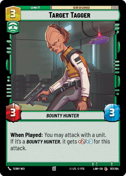 When Played: You may attack with a unit. If it's a Bounty Hunter, it gets +2/+0 for this attack.