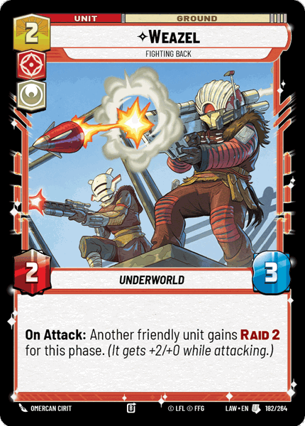On Attack: Another friendly unit gains Raid 2 for this phase. (It gets +2/+0 while attacking.)