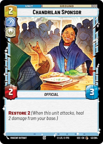 Restore 2 (When this unit attacks, heal 2 damage from your base.)