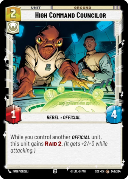 While you control another Official unit, this unit gains Raid2. (It gets +2/+0 while attacking.)