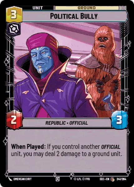 When Played: If you control another Official unit, you may deal 2 damage to a ground unit.