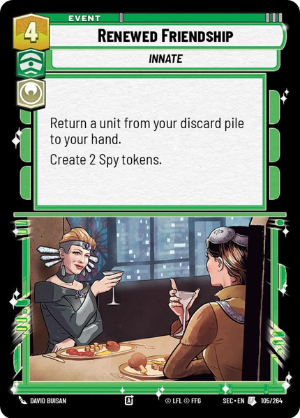 Return a unit from your discard pile to your hand. Create 2 Spy tokens.