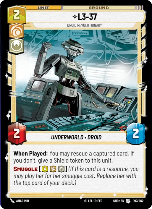(If this card is a resource, you may play her for her smuggle cost. Replace her with the top card of your deck.)