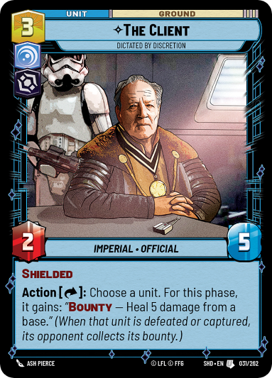 - Heal 5 damage from a base." (When that unit is defeated or captured, its opponent collects its bounty.)