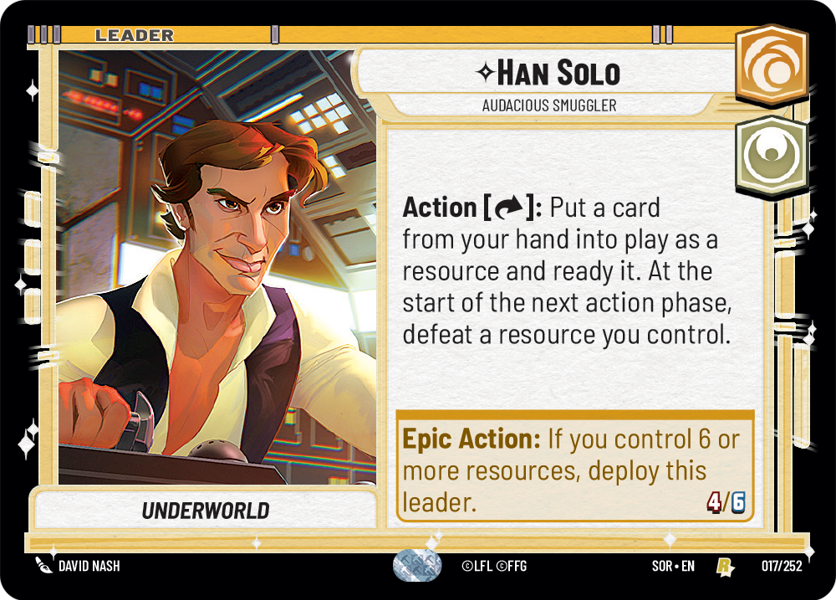 Epic Action: If you control 6 or more resources, deploy this leader.